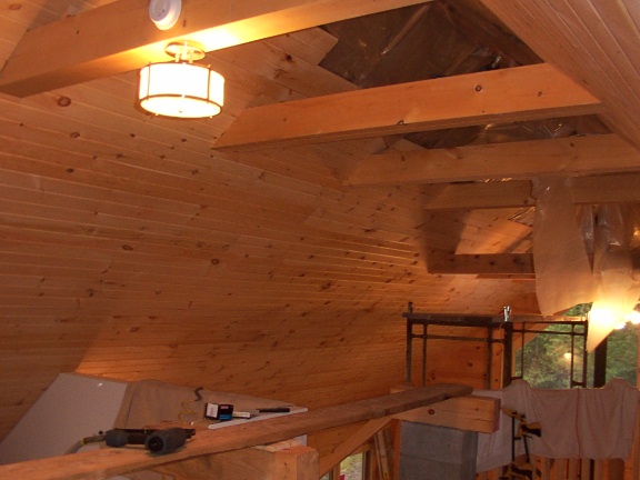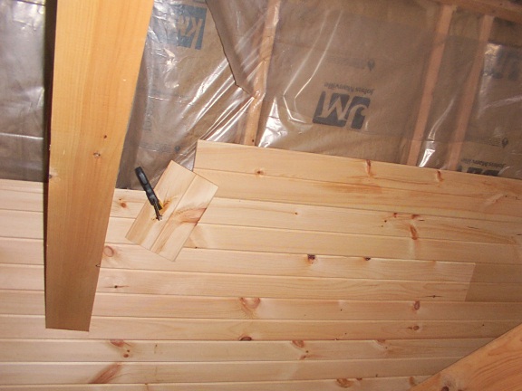 I polyed most of the boards I put up on the second side. I started putting up pieces above the ties,